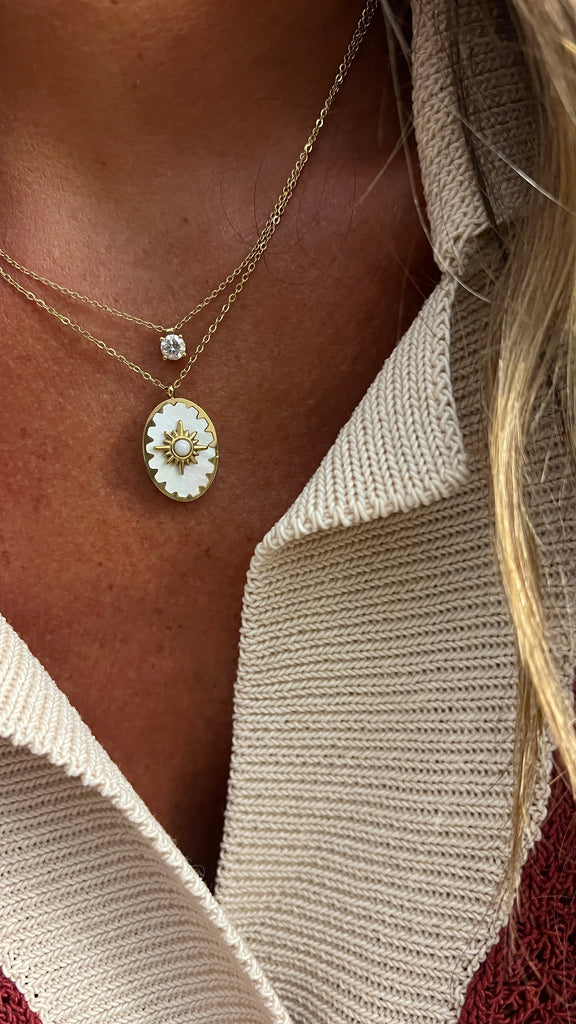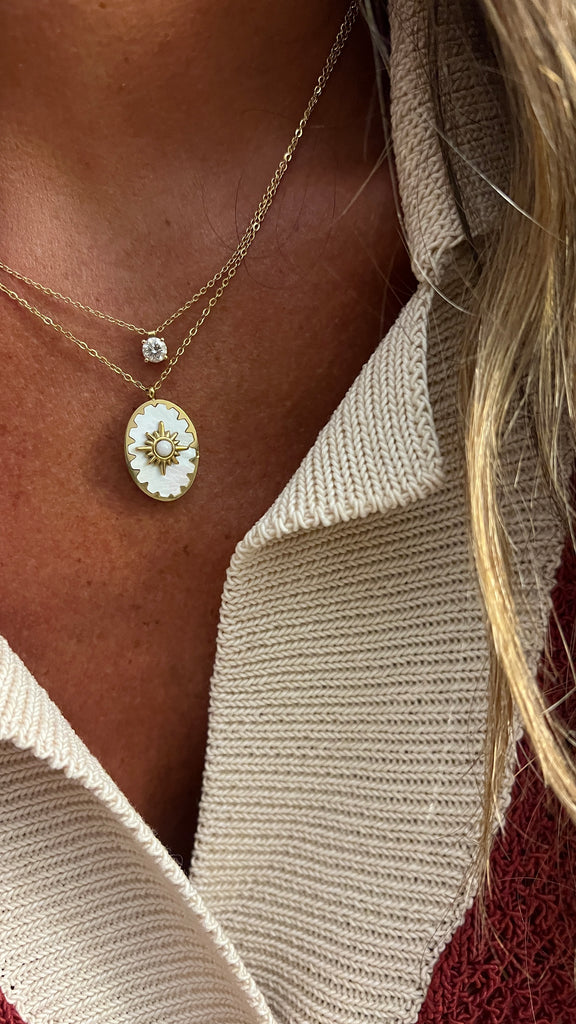 Collar con cadena de 40 cm.más alargo y colgante ovalado en nácar.