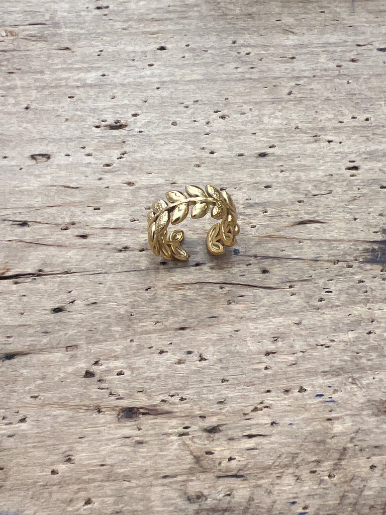 Anillo ajustable con centro floral tipo espiga.