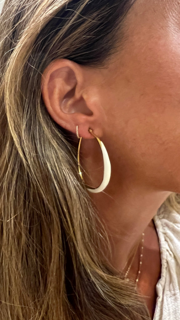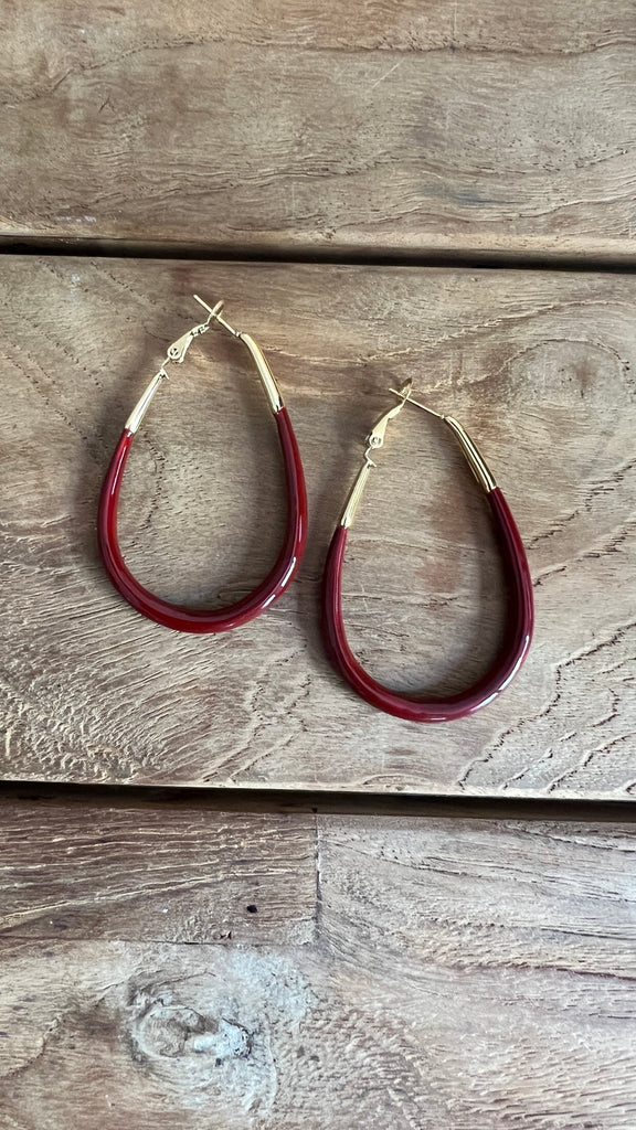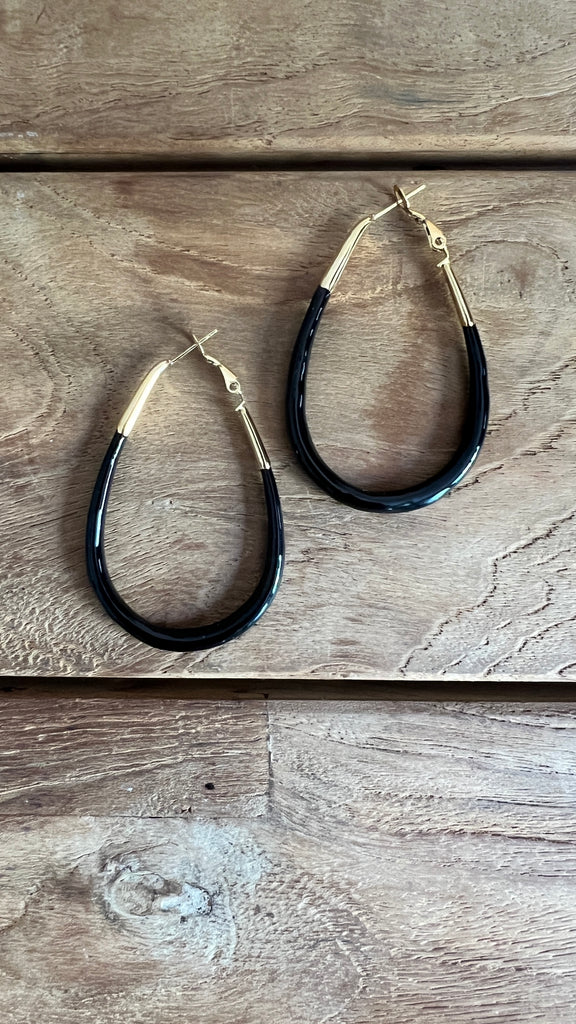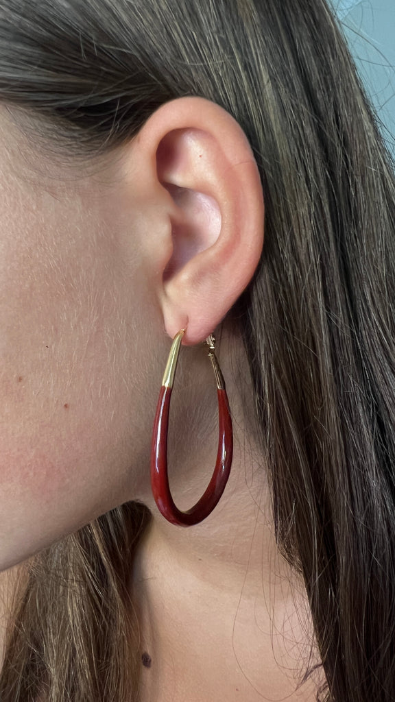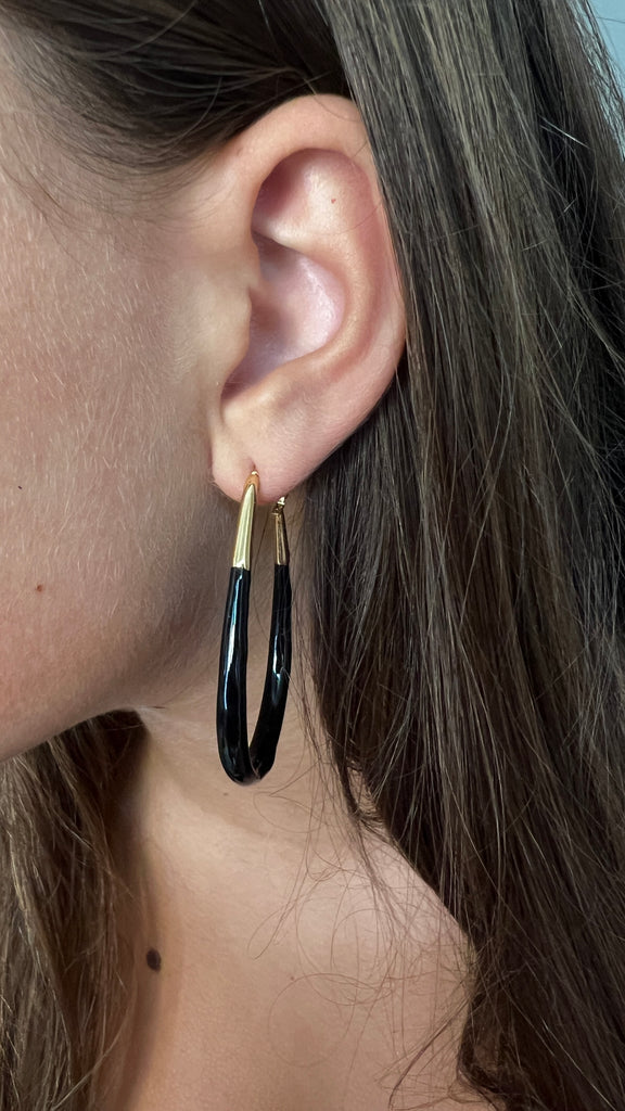 Pendientes de aros ovales con esmalte. Acero con baño de oro.